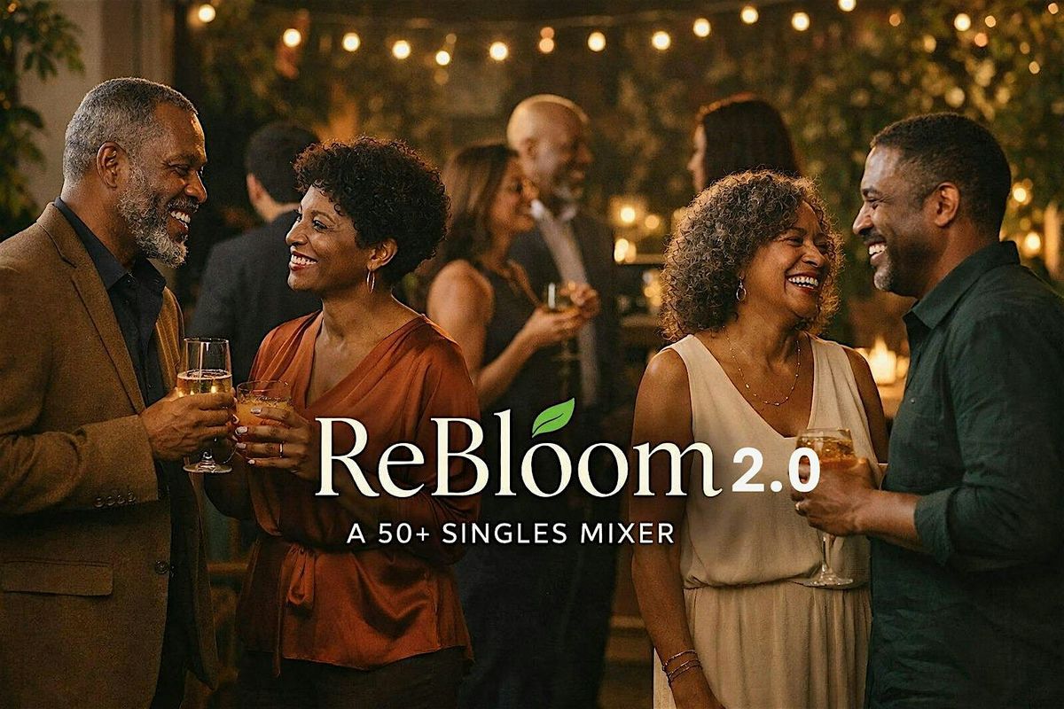 Rebloom: 50+ Singles Mixer 2.0 is here β and we leveled up! Join us for the perfect in-person evening to mingle, laugh, and connect with amazing singles in their 50s and beyond. Whether you're searching for friendship or something more, come experience a relaxed, fun atmosphere where new beginnings are just around the corner.