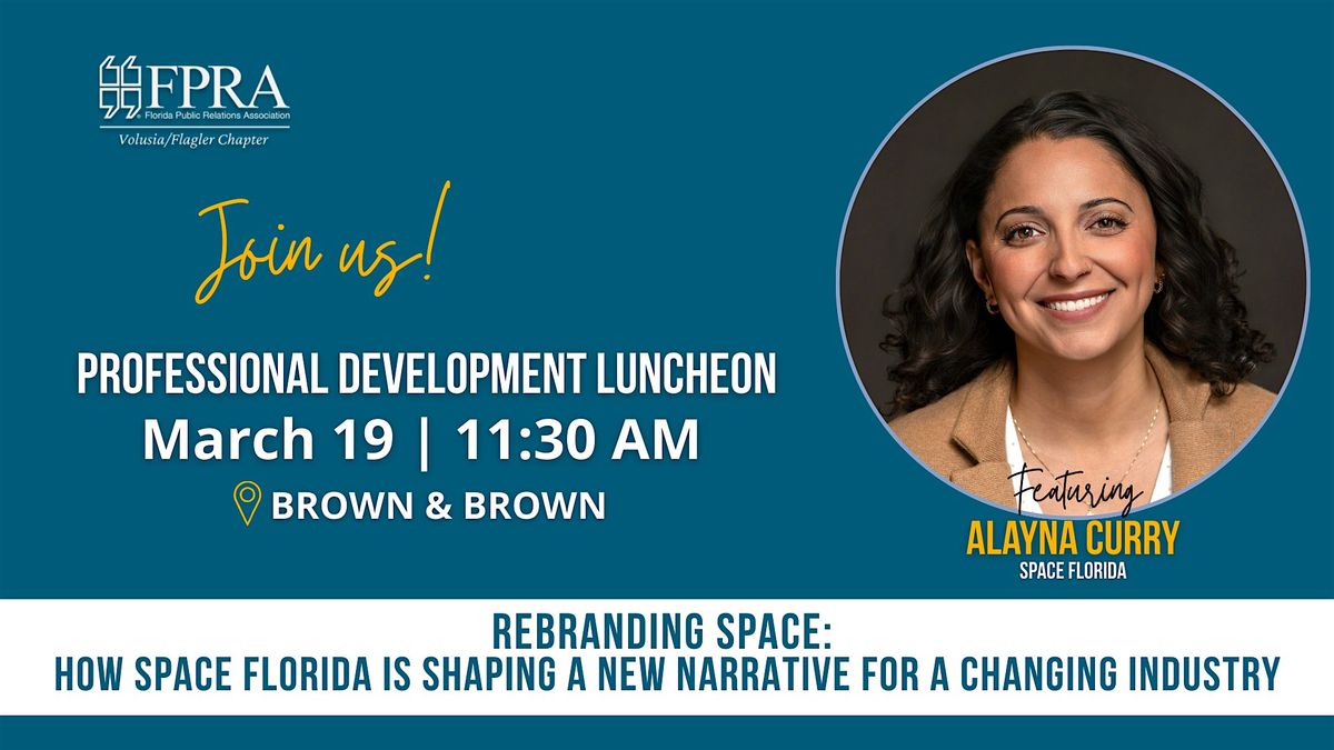 FPRA Volusia/Flagler is proud to welcome Space Florida Director of Public Relations Alayna Curry, APR, as the speaker at its professional development program on Thursday, March 19, at Brown & Brown, 300 N. Beach St., Daytona Beach.