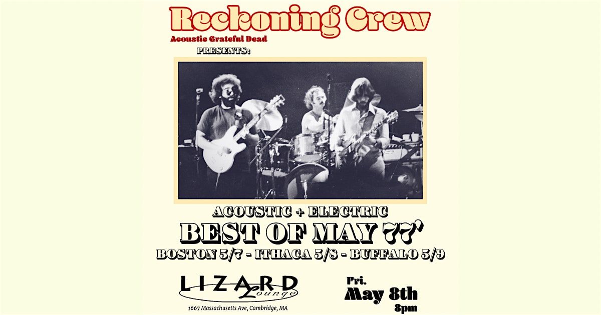 The Reckoning Crew brings together stalwart members of the Boston Grateful Dead scene to present an authentic emulation of the Dead’s iconic acoustic performances captured on the “Reckoning” album. Not limited to just this period of the Dead’s career, The Reckoning Crew, featuring David Rubin & Ian Brenckle from Diamond Blues, Mark Munzer of Playing Dead, Mike Verge from Torn and Frayed and Ben DeUrso of Citizens' Dead, has a deep love for all of the material of the storied songbook, and showcases that along with a fierce focus on improvisation & communication for a real good time!
