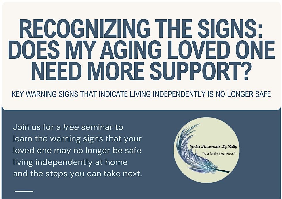Join us in person for a heartfelt session where we dive into how to spot the subtle signs that your aging loved one might need extra help. Whether you're worried about safety, memory, or daily tasks, we'll share tips and real talk about making sure they get the support they deserve. Come with questions, leave feeling empowered!