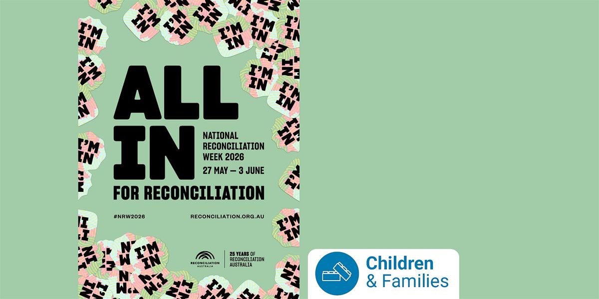 [Image Description: National Reconciliation Week 2026 banner - All In. Text reads Children & Families. ]