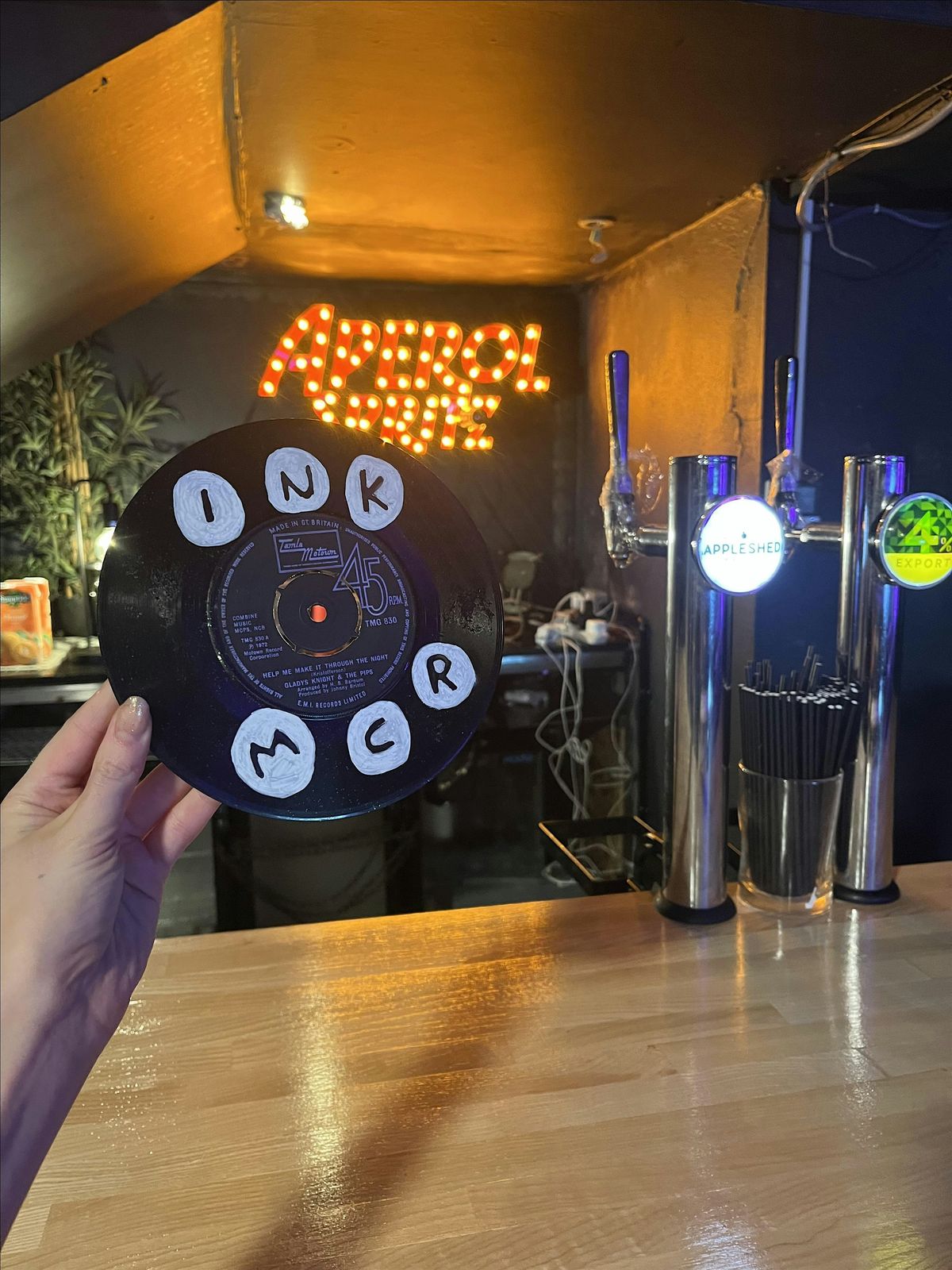 Paint rescued 7" vinyl, sip a drink and get creative with INK at Dusk till Pawn northern quarter Manchester.