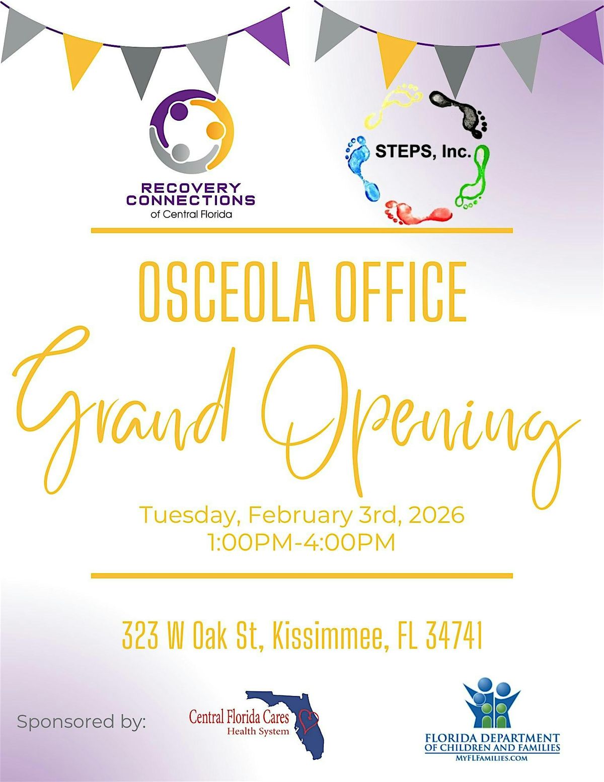 Come celebrate with us at the grand opening of our brand-new Osceola County office in partnership with Specialized Treatment, Education and Prevention Services, Inc.