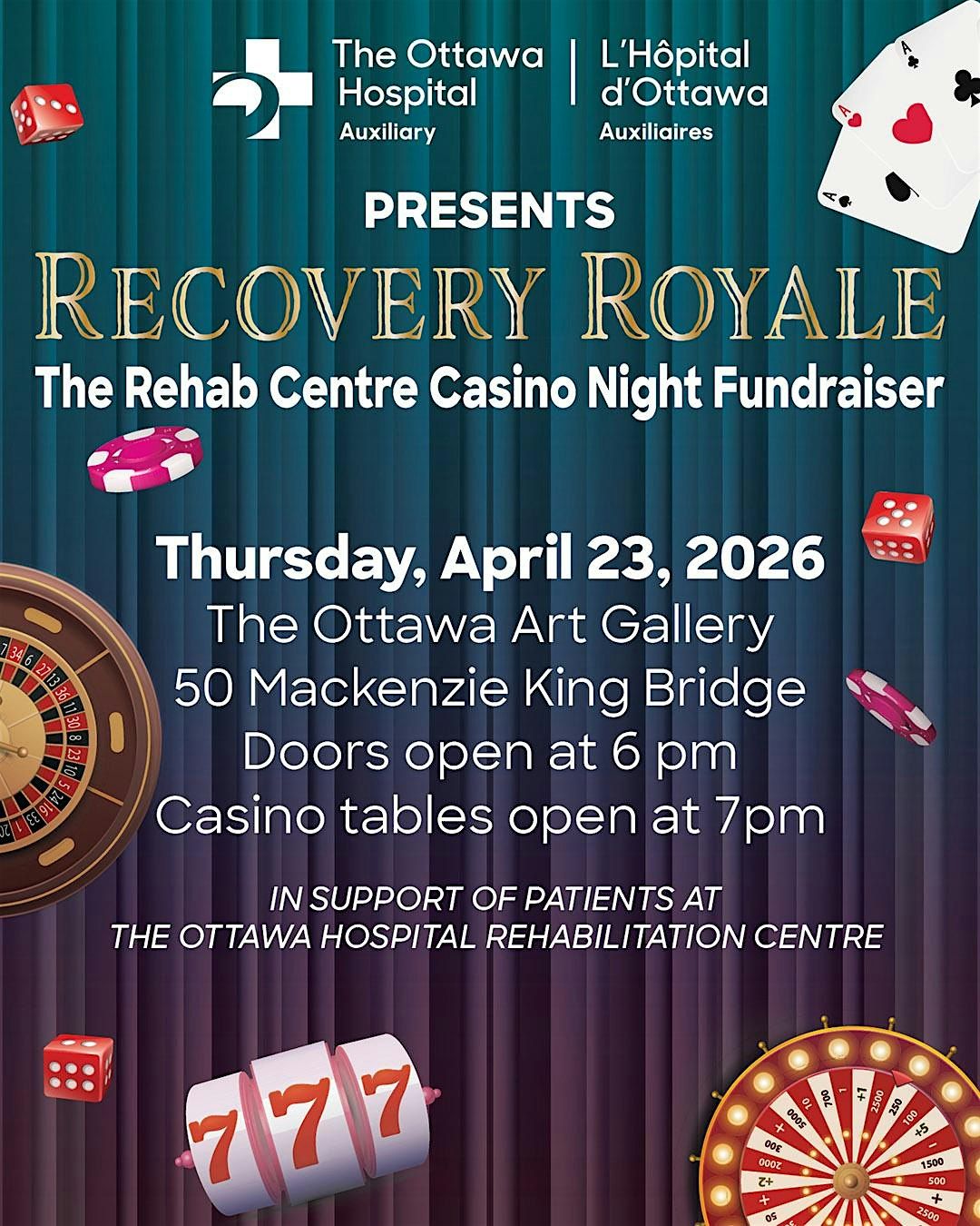Join us for a fun-filled night of casino games to support recovery for patients at The Rehab Centre!About this Event