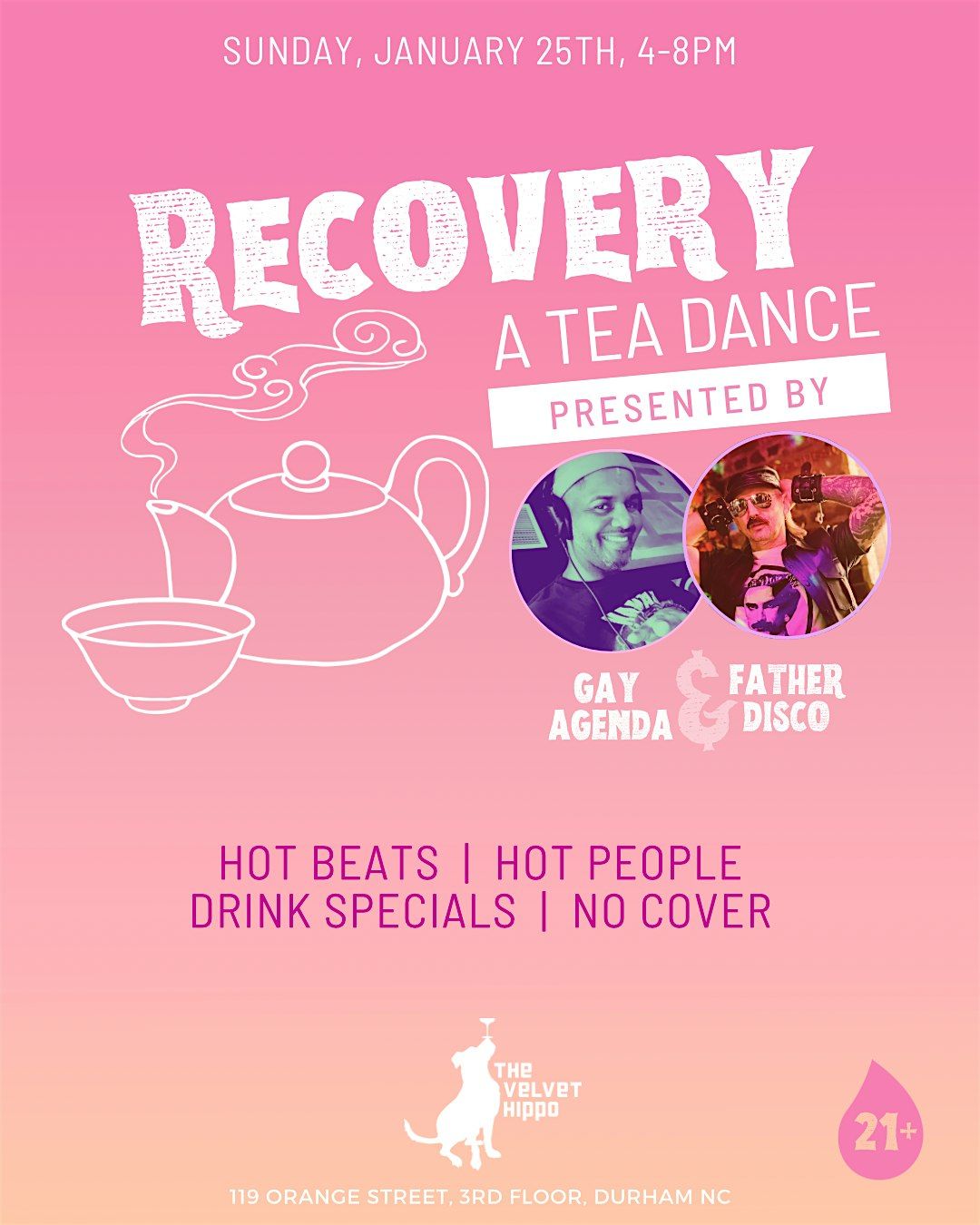 Recovery is back!!! Sunday January 25th at The Velvet Hippo. Music by Gay Agenda and Father Disco. 4pm-8pm FREE! Doing dry January? No problem. There are plenty of NA options to choose from.