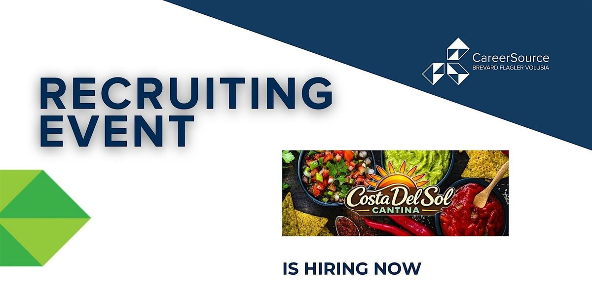 Join CareerSource Brevard Flagler Volusia and Costa Del Sol Cantina for a hiring event. To set up an interview during the event call (321) 504-7600 or email [email protected].