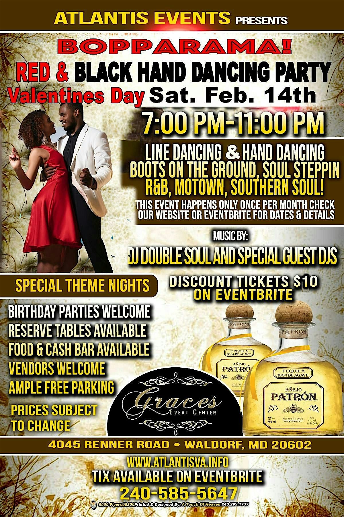 Grown & Sexy Valentines Bopporama. Come get your groove on while having a great time with friends. Get ready for plenty of Bopping, Hand & Line Dancing at Graces Event Center featuring DJ Double O Soul & Special Guest DJ's.