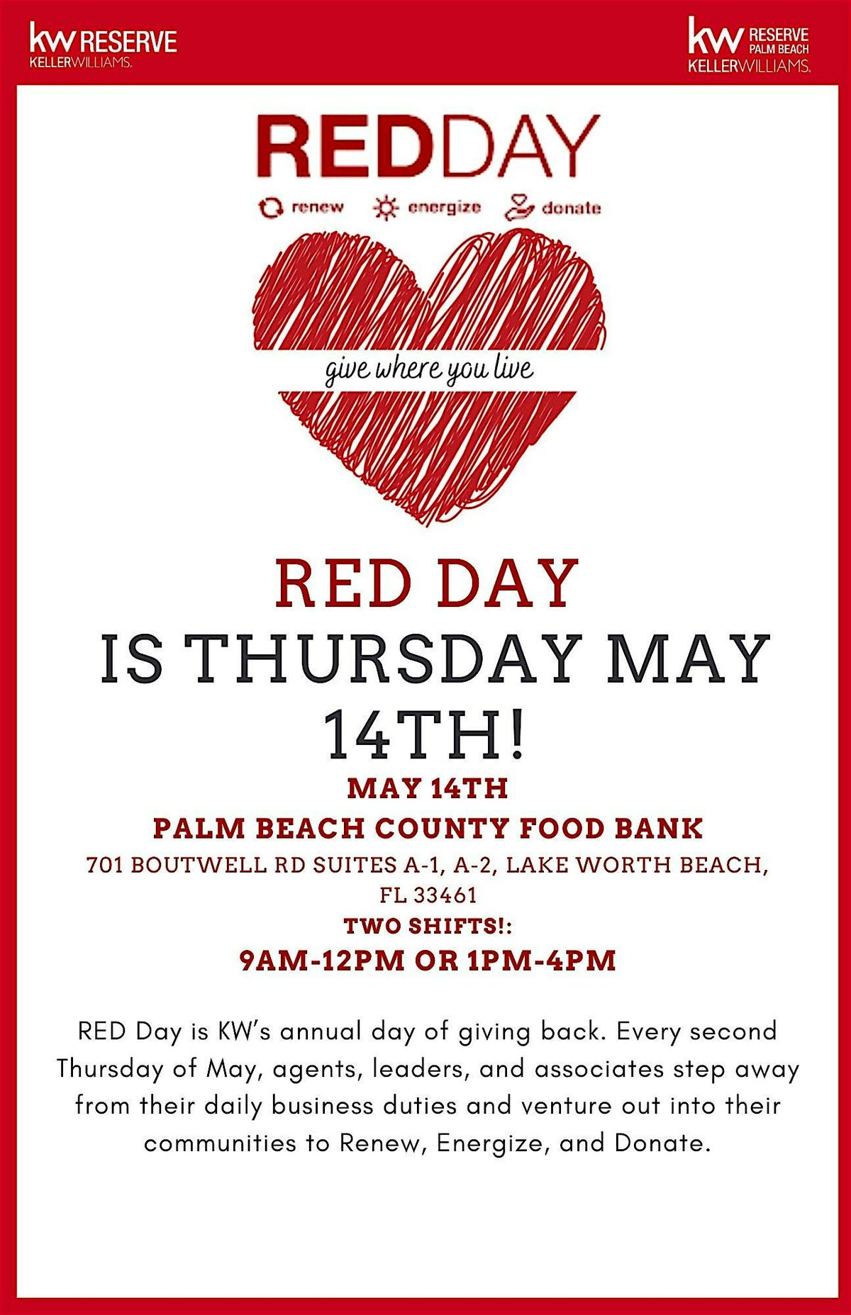 Keller Williams RED Day: A yearly day of service where agents volunteer locally to give back and make a positive community impact.