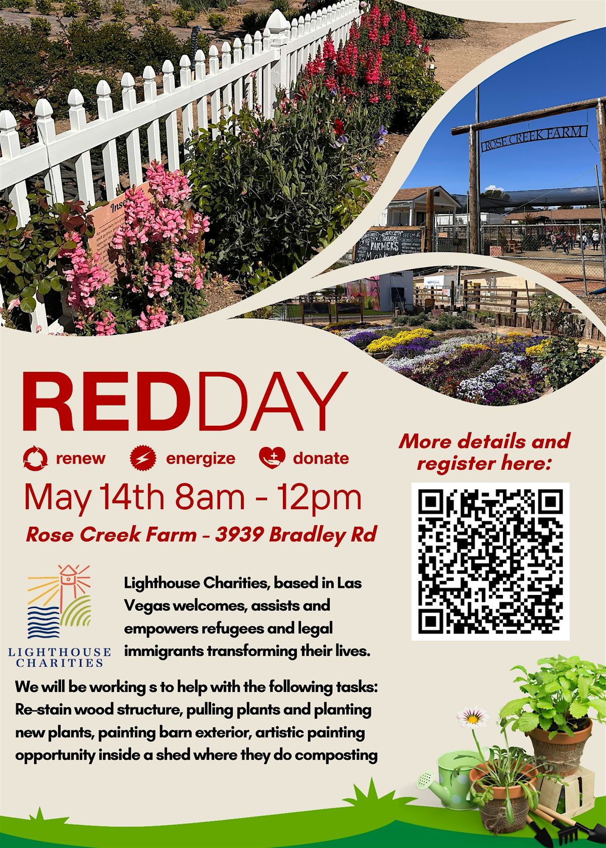 We will be working with Lighthouse Charities to help with the following tasks:- Re-stain wood structure pergola- Pulling plants that will not survive the summer heat and planting new plants- Painting barn exterior