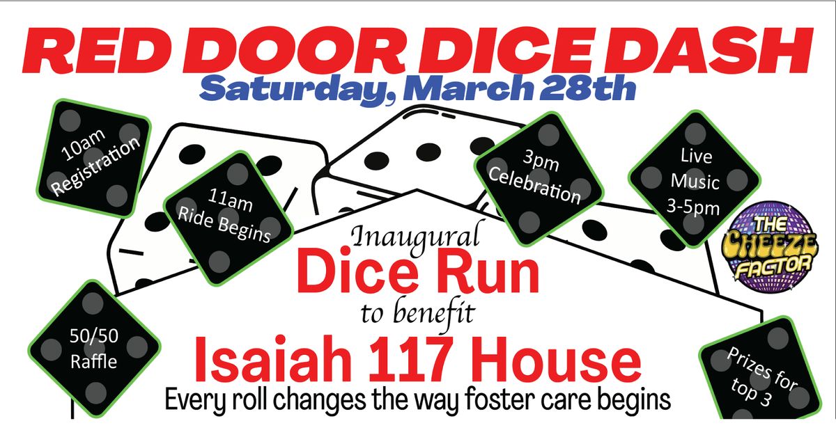 The Red Door Dice Dash is a community pub-style dash designed to support Isaiah 117 House of Johnston County, a local nonprofit providing physical and emotional support for children entering foster care.