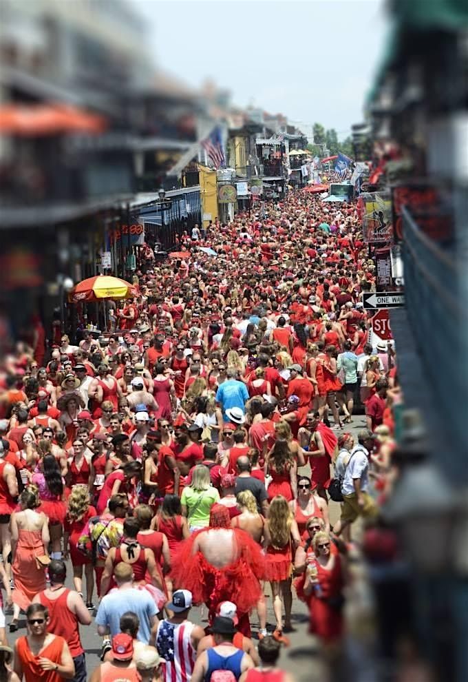 Be in the mix of the madness without being in the crowd for Red Dress Run with our VIP Bourbon Street Balcony Party Tickets.