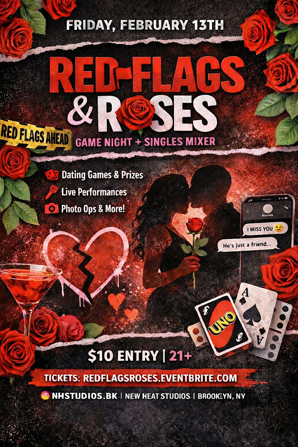 Red Flags & Roses is a pre-Valentine’s Day singles experience blending games, performances, food, drinks, and content-worthy moments. This isn’t speed dating and it’s definitely not awkward — it’s a vibe-driven mixer designed for connection, laughter, and real conversations about modern dating.