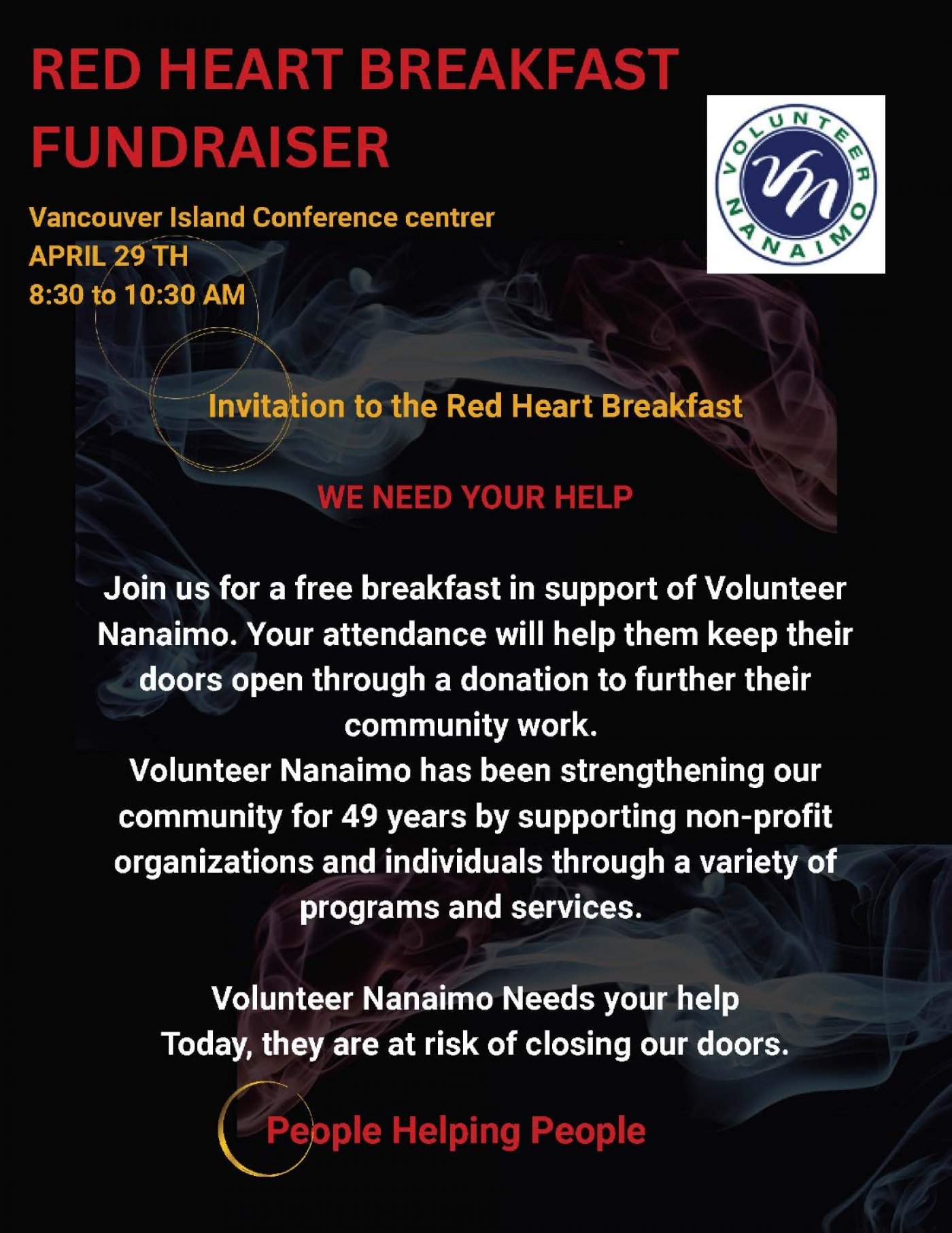 People Helping People. If you are unable to attend the Red Heart Breakfast and would like to make a donation, go to https://volunteernanaimo.ca/donate
