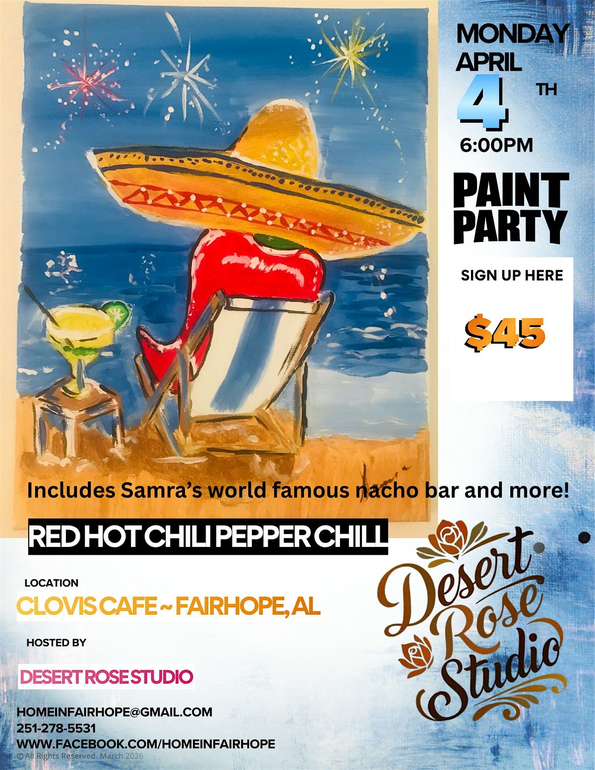 Red Hot Chili Pepper Chill for Cinco de Mayo Eve Paint and Sip Party!