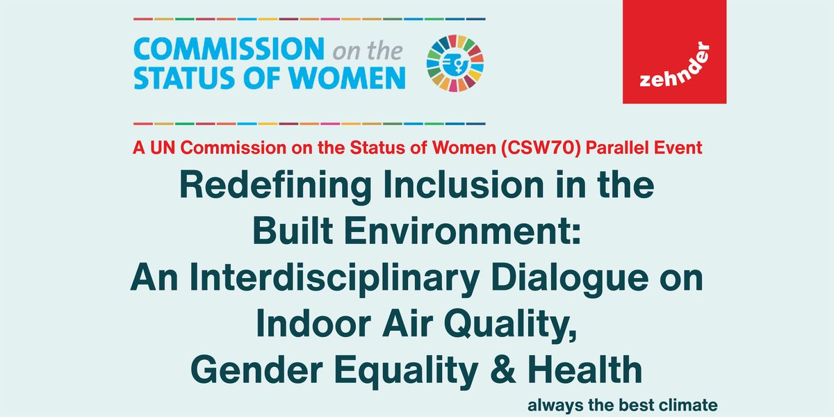 Ventilation and Gender Equality: Rethinking Inclusion in the Built Environment is a forward-looking, interdisciplinary event that examines how ventilation and indoor air quality - core yet often invisible elements of the built environment - shape inclusion, participation, and equality. Convened by Zehnder, the global Thought Leader in Ventilation and Indoor Climate Solutions, the event will take place on the sides of the UN Commission on the Status of Women (CSW).