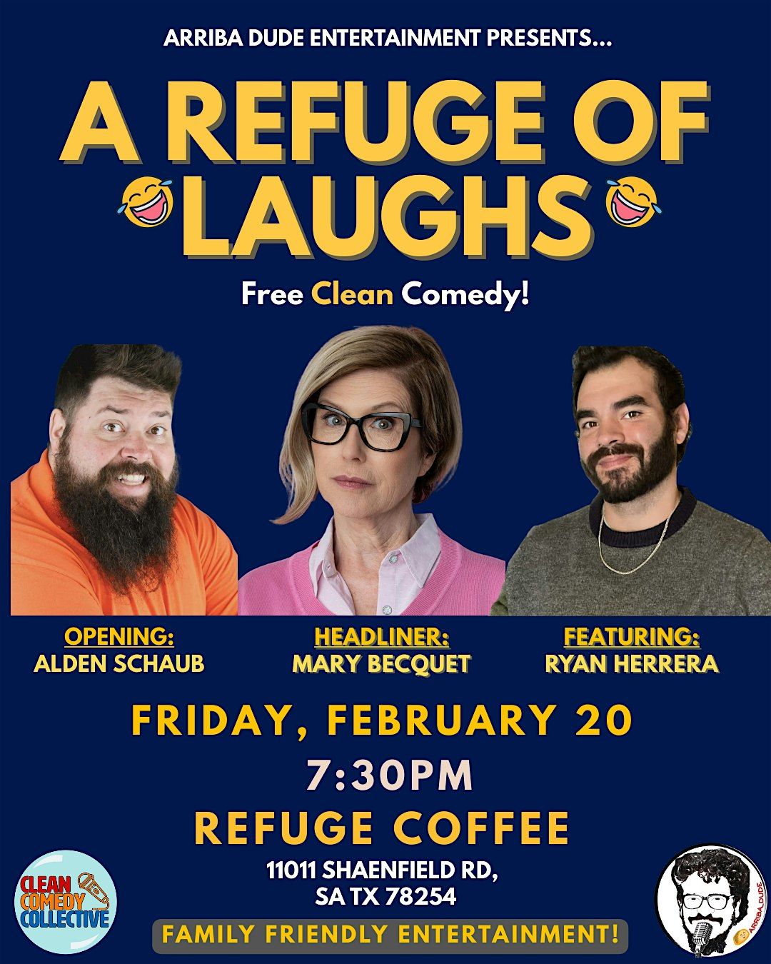 Get ready for a night of FREE, clean, laugh-until-your-face-hurts comedy night, hosted by Arriba Dude Entertainment.