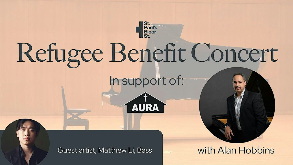 On Sunday, May 31 at 5pm, join us at St. Paul's Bloor Street for an inspiring evening of music and hope. Experience the artistry of Alan Hobbins (piano) with guest musician, Matthew Li (bass) as they perform a beautiful concert program to benefit AURA — the Anglican United Refugee Alliance. Your presence and support will help AURA to continue its vital work in refugee sponsorship and resettlement in Toronto. Come for the beautiful music, and stay to be moved by remarkable stories of resilience, courage and new beginnings.