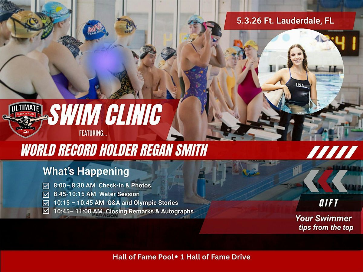 Join us for an exclusive swim clinic featuring Olympic champion and world record holder Regan Smith! This is a rare opportunity to learn from the best, get in the water with her, and gain insight into the mindset and techniques of elite swimmers.