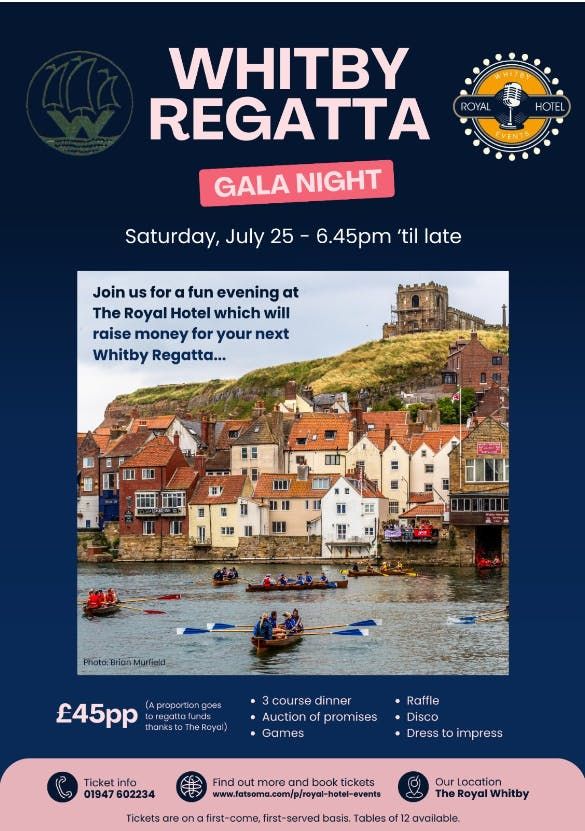 Raising Funds for the Whitby Regatta - Gala Diner in The Royal Ballroom - July 25th - 6.45pm3 course Meal