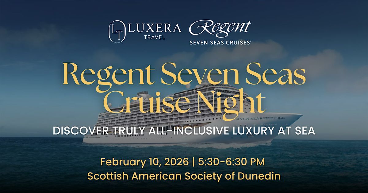 Join Luxera Travel for an inspiring evening at The Scottish American Society in Dunedin as we introduce you to the world of Regent Seven Seas Cruises®—the leader in ultra-luxury, all-inclusive ocean travel.