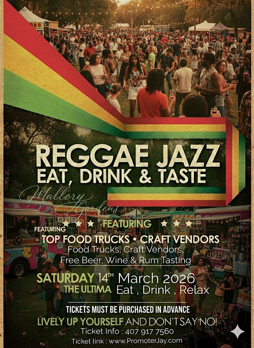 Join us for an unforgettable afternoon at the beautiful Mallory Gardens for the ultimate fusion of rhythm and flavor: Reggae Jazz Eat, Drink & Taste.
