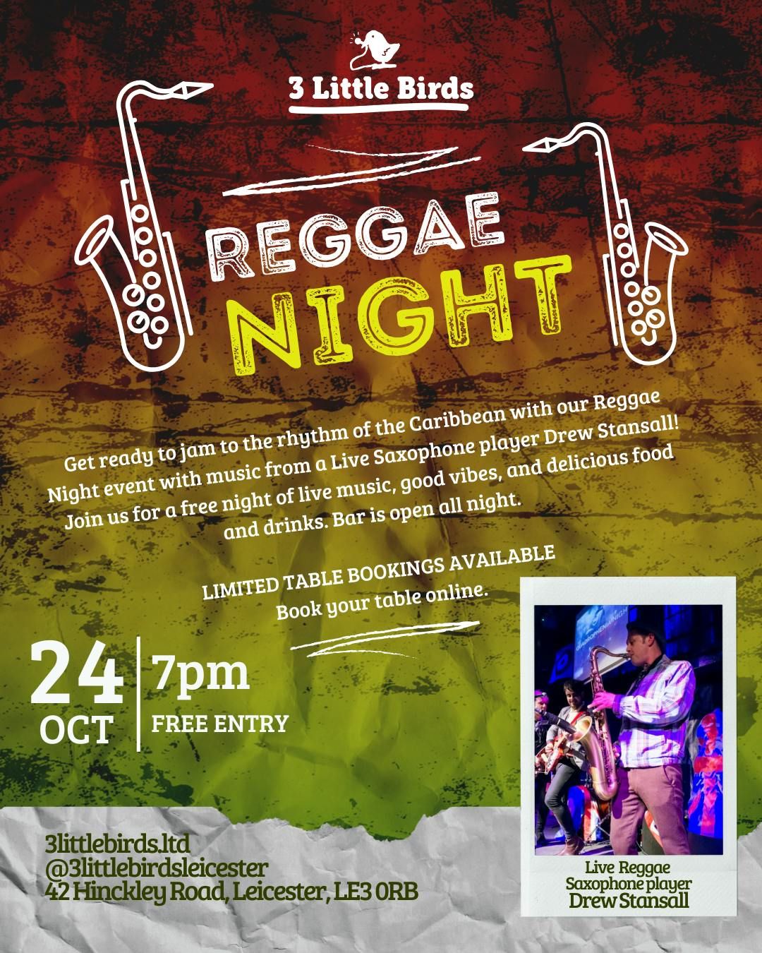Get ready to jam to the rhythm of the Caribbean with our Reggae Night event with music from a Live Saxophone player Drew Stansall! Join us for a free night of live music, good vibes, and delicious food and drinks. Bar is open all night.