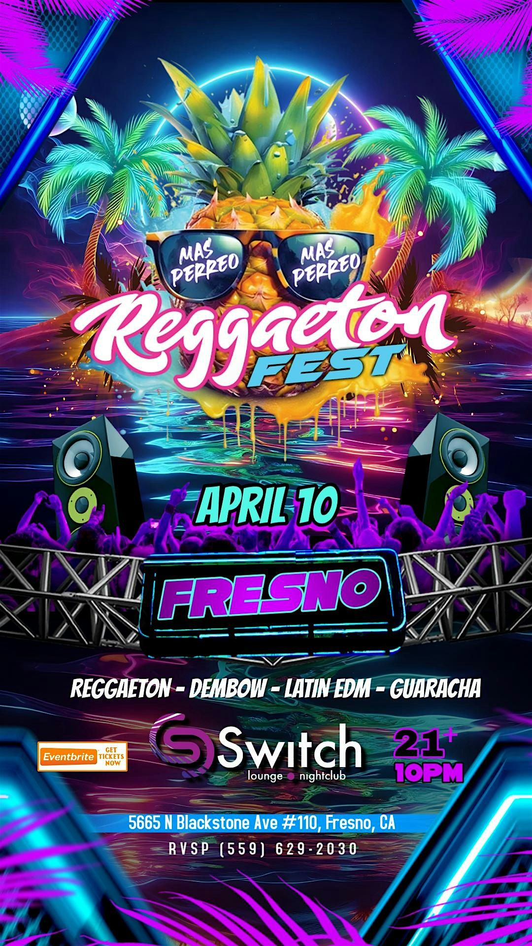 The Hottest 21+ Reggaeton Party is coming to Fresno at Switch Night Club Featuring the Hottest Reggaeton DJs around playing the best of Reggaeton music from heavy hitter Classics to best Newest Reggaeton Music. This is a Reggaeton & Latin Rave Experience