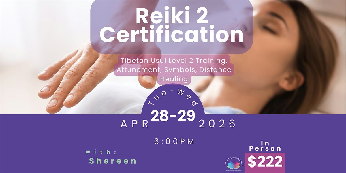 Students will receive a Reiki Level 2 certificate at the end of Night Two, along with a Reiki Practitioner Magic Bag filled with supportive tools (such as crystals, candles, incense, or other items aligned with your evolving practice).