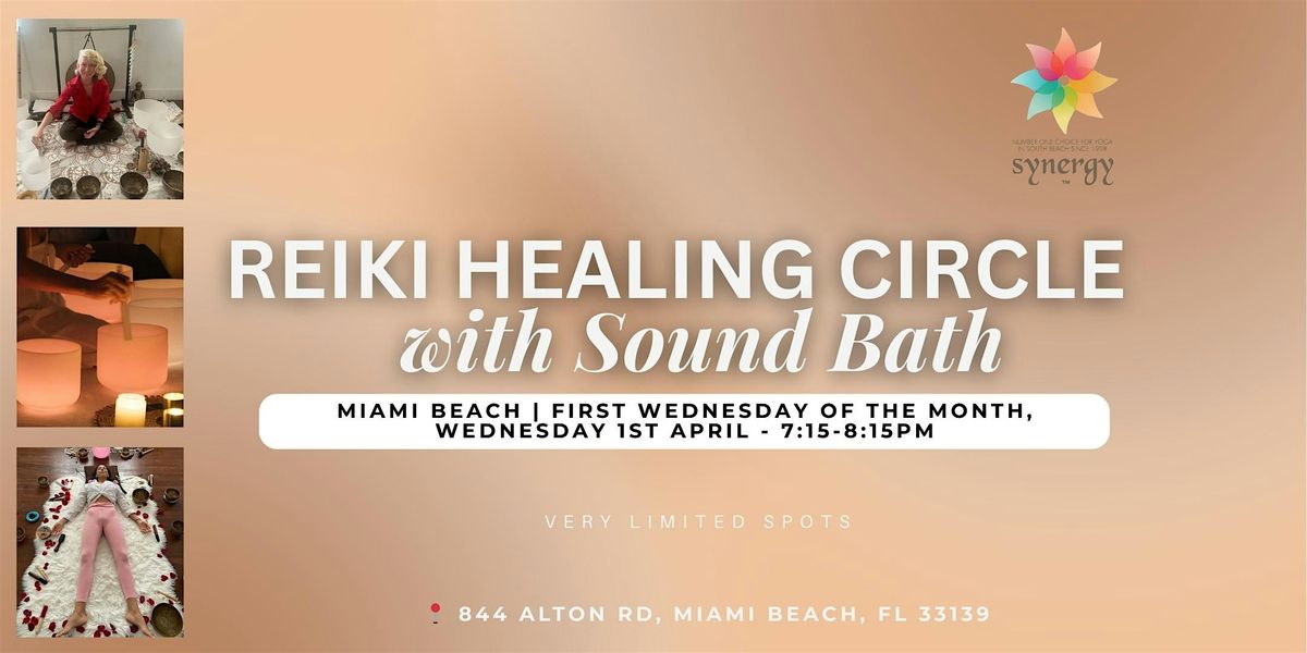 Join us for an immersive evening of healing and relaxation at our Reiki Circle and Sound Bath event. This in-person gathering will take place in the heart of Miami Beach, FL at Synergy Yoga Center.