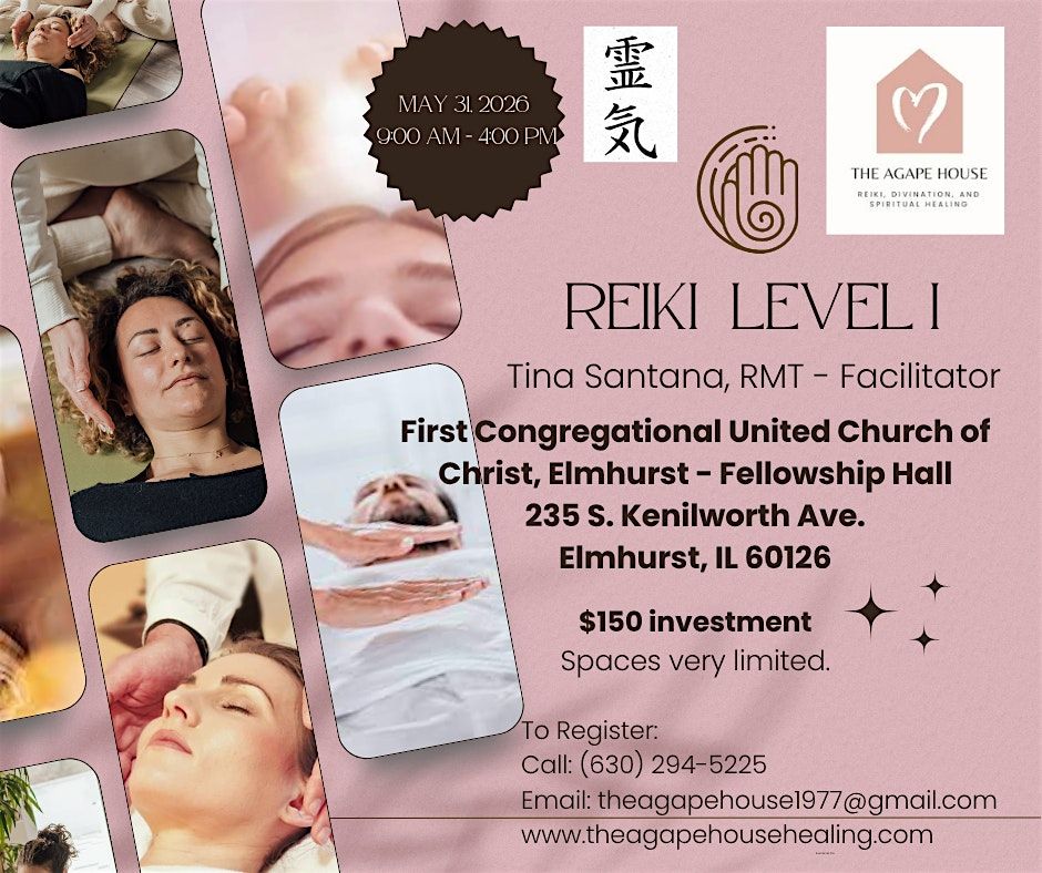 PLEASE NOTE - IF YOU ARE INTERESTED IN LEARNING REIKI I & II (II OFFERED IN FEBRUARY) AND WOULD LIKE TO SAVE MONEY AND REGISTER AS A PACKAGE, PLEASE VISIT THIS WEBSITE: https://www.theagapehousehealing.com/service-page/two-step-package-reiki-i-ii?referral=service_list_widget