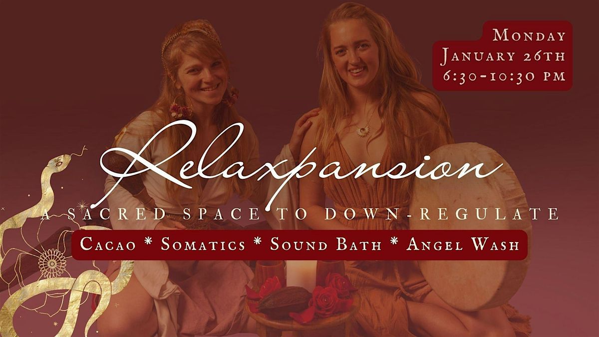 Relaxpansion is a sacred space that weaves together cacao, somatic healing, sound bath, and angel wash. It is an invitation to relax into the Great Mystery, feel your somatic body unwind, and allow the magic of life to carry you forth.