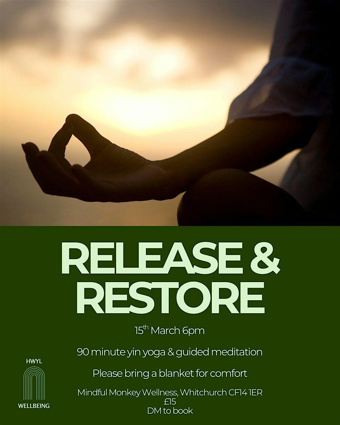 Join me for 90 mins of release and restoration. We'll start with a gentle yin practice to stretch our bodies and still our minds. This will be followed by a guided meditation and extended savasana to calm our nervous system, leaving us feeling lighter and restored.