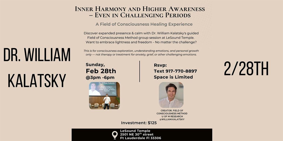 DISCOVER EXPANDED PRESENCE & CALM WITH DR. KALATSKY'S GUIDED FIELD OF CONSCIOUSNESS METHOD GROUP SESSION.