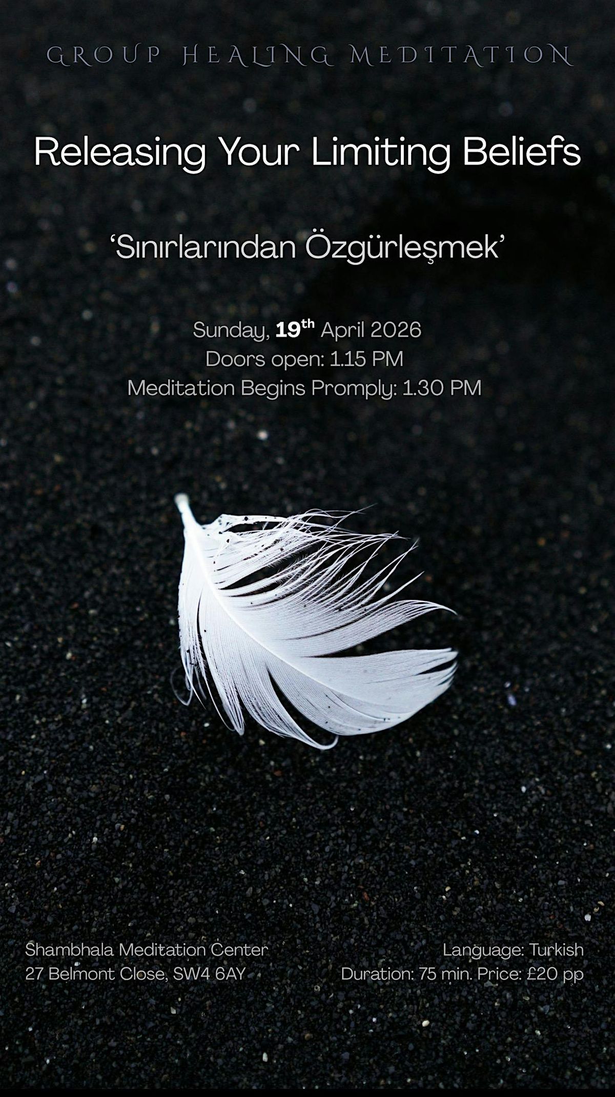 Once again, we will come together in the peaceful and welcoming atmosphere of Shambhala Meditation Centre. The session will be held in Turkish and will offer a calm, safe, and inclusive space for everyone who feels ready to release what no longer serves them.
