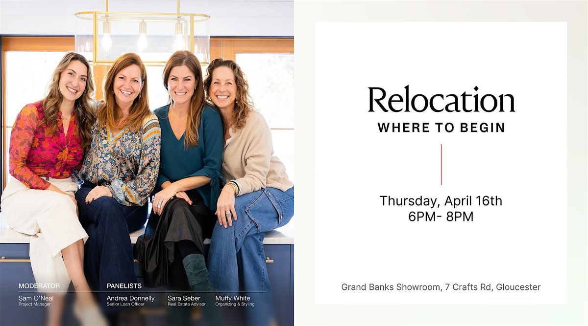 Join a panel of top professionals who guide people through relocation every day: Real Estate Advisor, Sara Seber, Professional Organizer, Muffy White, and Senior Loan Officer, Andrea Donnelly. The panel will be moderated by Sam O’Neal, Project Manager at Grand Banks.