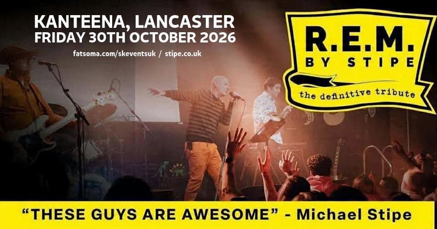 Join us at Kanteena, Lancaster on Friday 30th October 2026, where “Stipe” will be blasting out all those R.E.M classics, fan faves, deep cuts and loads more! Stipe are recognised as the definitive tribute to R.E.M., the band from Athens, Georgia who are widely credited as pioneers of alternative rock, influencing countless bands who would follow, including Nirvana, Pearl Jam, and Radiohead.