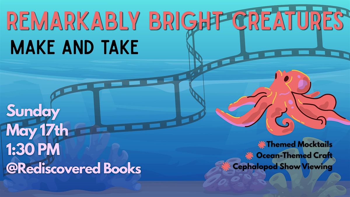 Join us in person for a fun and creative experience celebrating the movie release of Remarkably Bright Creatures! Come alone, bring a friend, or come as a group. Sip some ocean themed mocktails at our Mocktail Bar and create some fun craft projects, while visiting with other fans of Remarkably Bright Creatures. It's a perfect chance to let your imagination run wild, hang out with cool folks, and create something awesome. Don’t miss out on this unique hands-on event—your new favorite hobby might be just a craft away!