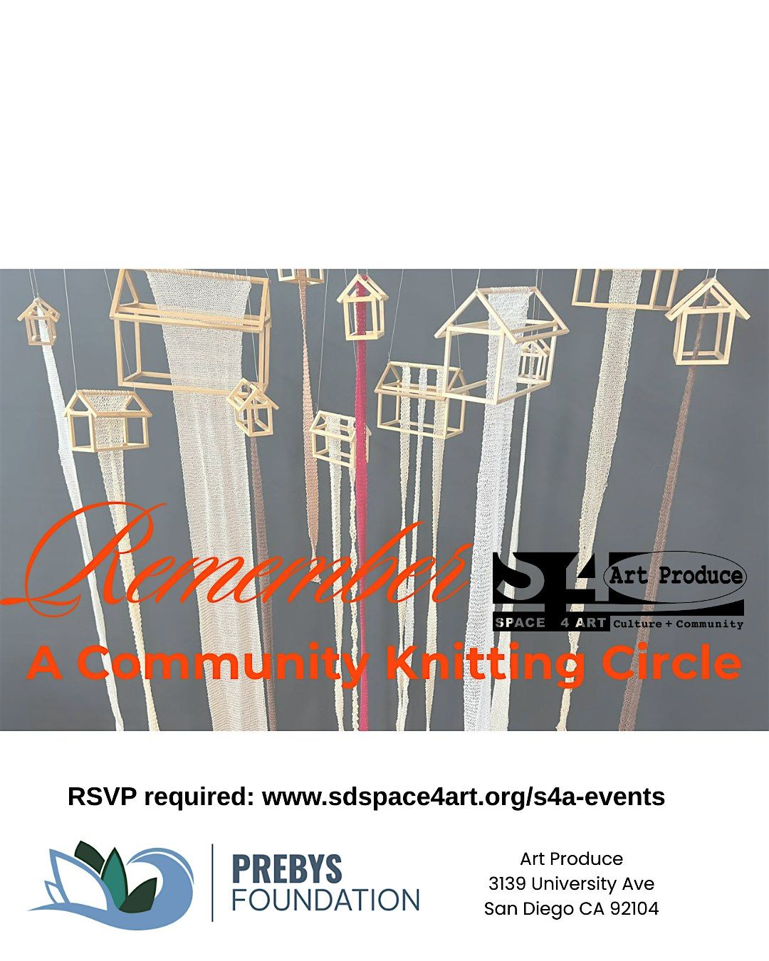 Remember will be presented at Grossmont College in early 2027 and will feature hundreds of hand-knitted, streaming banners— with each stitch honoring an individual impacted by sexual violence. Through this immersive installation and community participation, the project seeks to foster awareness, remembrance, and solidarity through the quiet, powerful act of making.