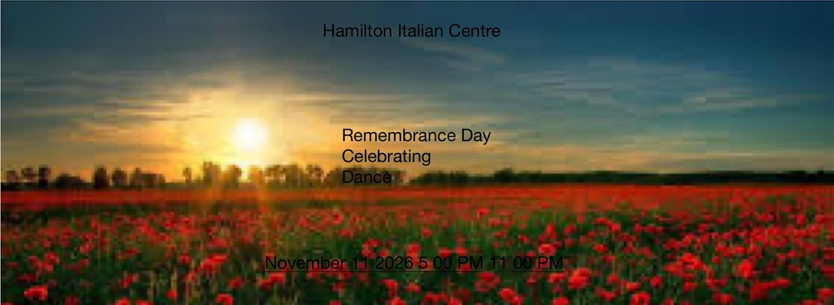 Welcome to the Remembrance Day Celebrating Dance event! Join us on November 11, 2026 at 5:00 PM at the Hamilton Italian Centre - SDI Hamilton. Let's come together to honor and remember those who have served our country. It's going to be a night filled with music, dance, and heartfelt tributes. Don't miss out on this special evening of remembrance and celebration. See you there!