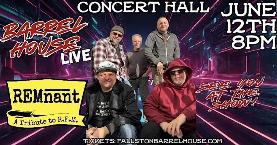 Get ready to experience the hauntingly beautiful sounds of R.E.M. live at Fallston Barrel House on Friday, June 12th at 8 PM! REMnant, a tribute band dedicated to bringing the iconic music of R.E.M. to life, takes the stage for an unforgettable night.