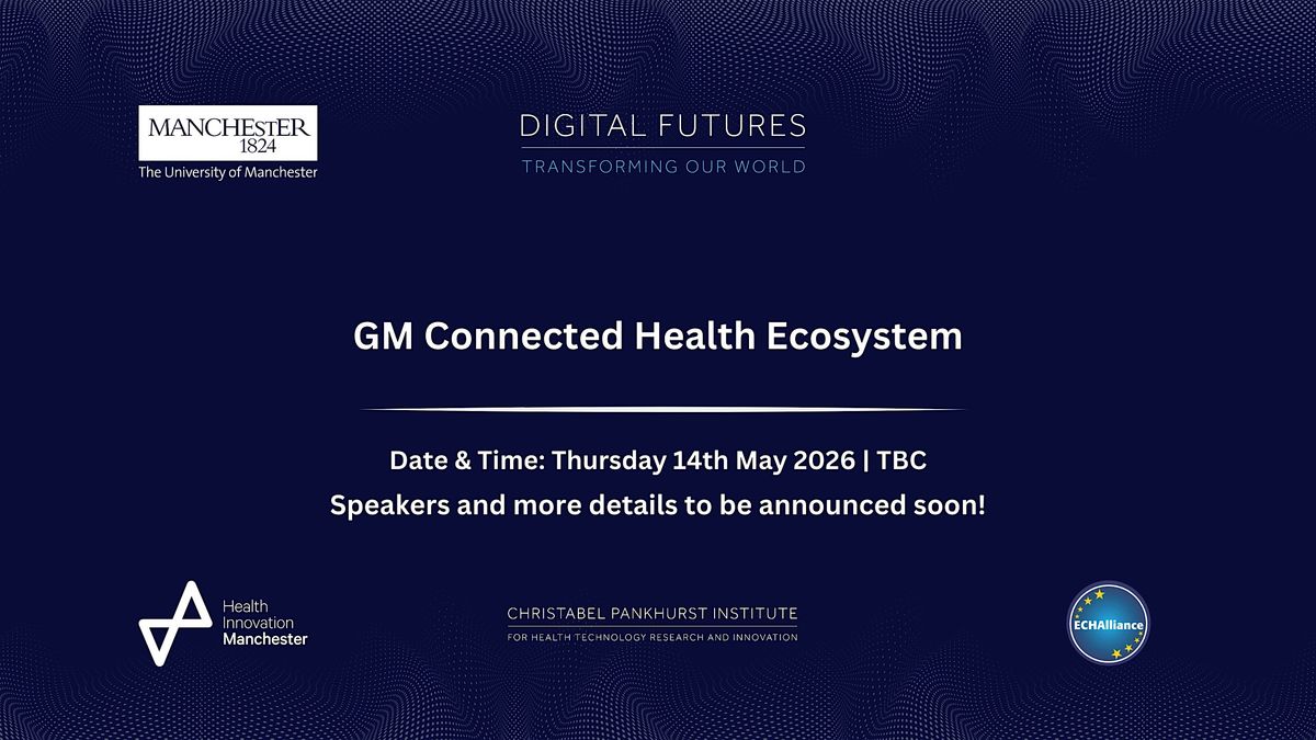 Join Digital Futures and The University of Manchester, at the next the GM Connected Health Ecosystem series, and connect and collaborate with NHS and NHS-related staff, SMEs, academics and researchers, innovators, and those passionate about improving health and care!