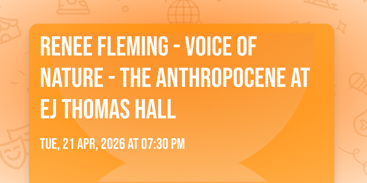 🌟 Step into a world of wonder at Renee Fleming - Voice of Nature - The Anthropocene at EJ Thomas Hall, where extraordinary moments await! 🏛️ Located at EJ Thomas Hall in dynamic Akron, OH, this event will become the talk of the town. 📅 Join us on April 21st, 2026 at 07:30 PM for a celebration that defies the ordinary. ✨ This curated experience brings together the best of entertainment, culture, and community spirit. Every detail has been thoughtfully planned to ensure an unforgettable experience for all our guests. 🎯 Take advantage of this opportunity to be part of something special. 🎊 Early registration is recommended as space is limited!