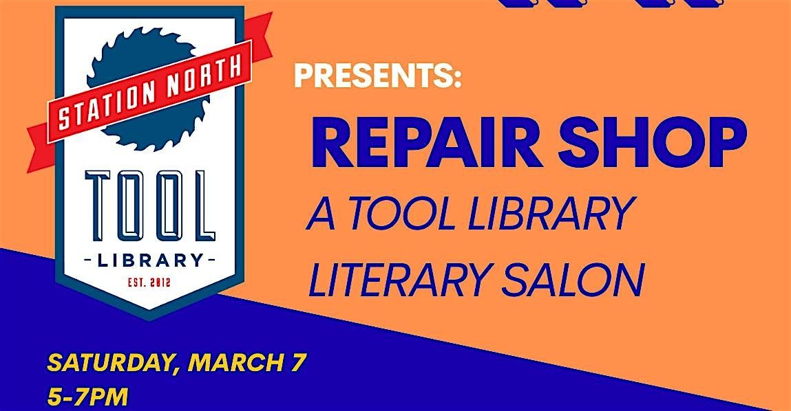 On Saturday, March 7, join us for an AWP offsite literary salon celebrating repair in all its forms at Baltimore’s glorious Station North Tool Library. We'll have story and poetry readings, light crafting, relaxation, hydration, and community poem repair. We hope it's a leisurely, restorative late afternoon to help us all come down off a week full of overindulgence in the English language.