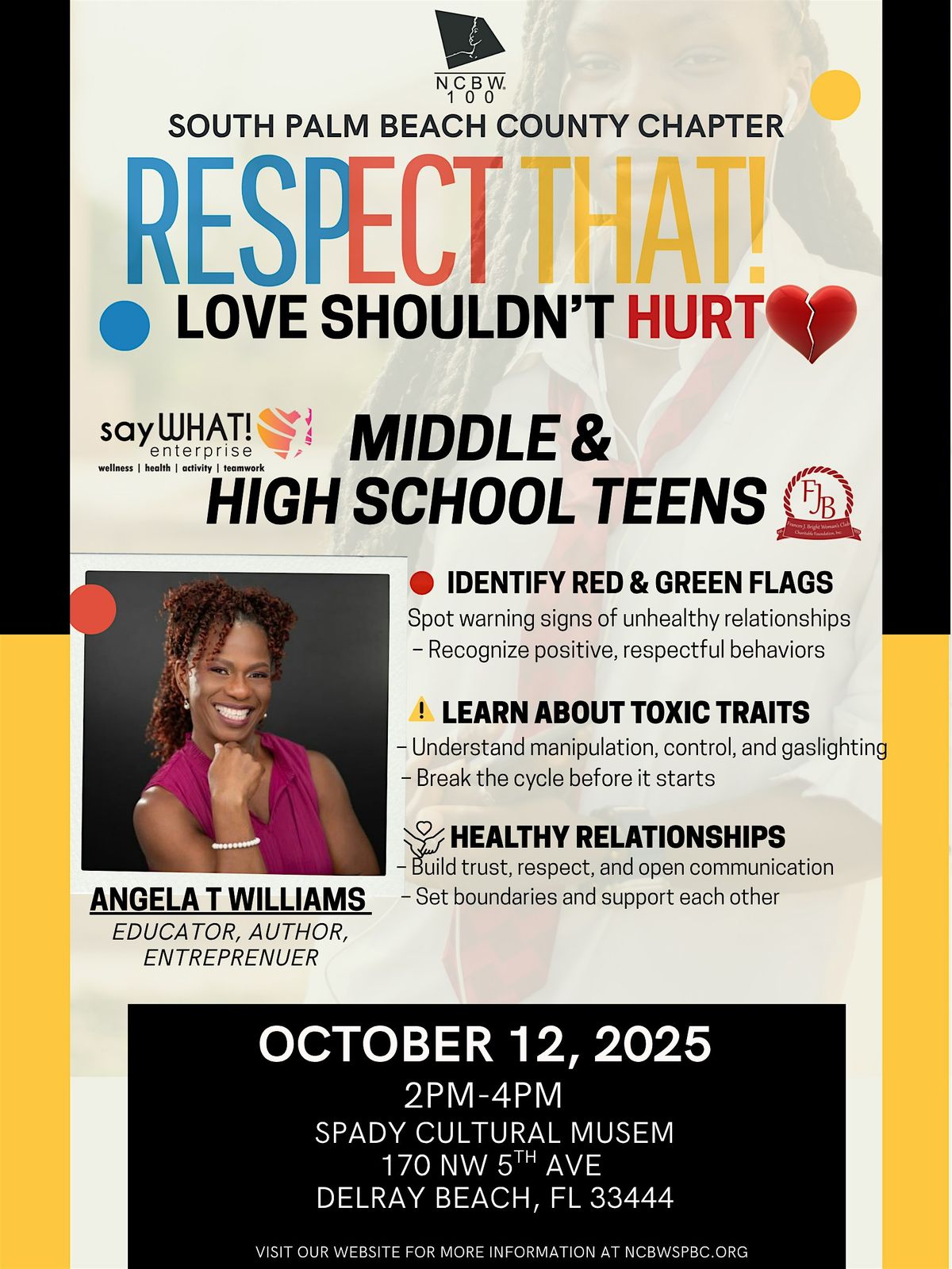 Free workshop for Middle and High School Teens- Spot warning signs of unhealthy relationships, Recognize positive, respectful behaviors.