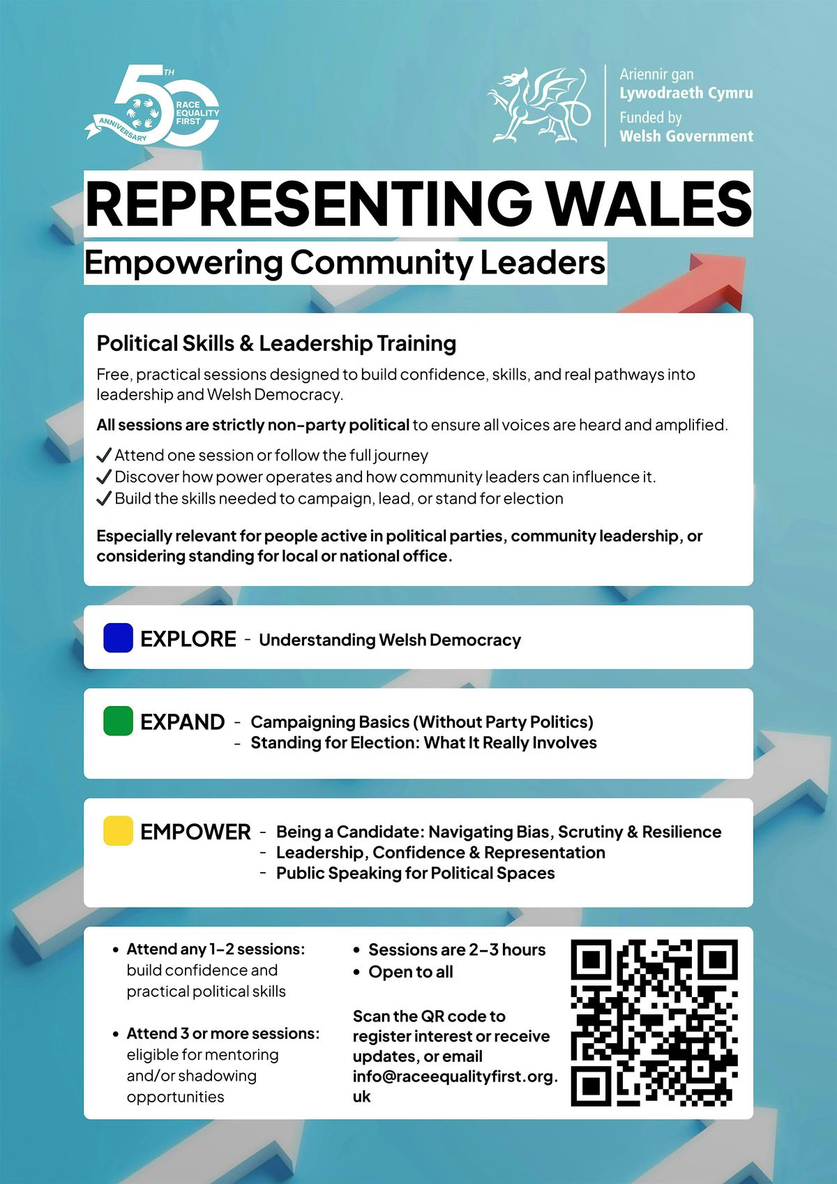 Funded by Welsh Government and delivered by Race Equality First to support diverse representation in leadership and public life.