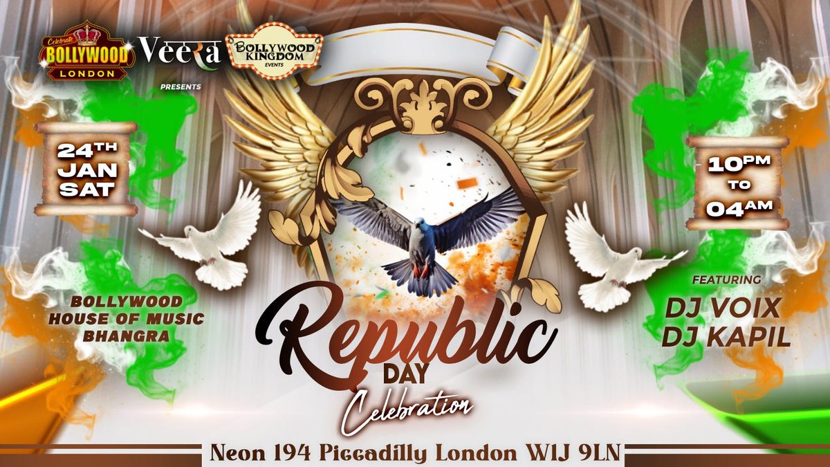 Celebrate Bollywood London x Veera x Bollywood Kingdom Events proudly present a high-octane Republic Day Celebration, bringing together the best of Bollywood, House of Music & Bhangra under one roof.