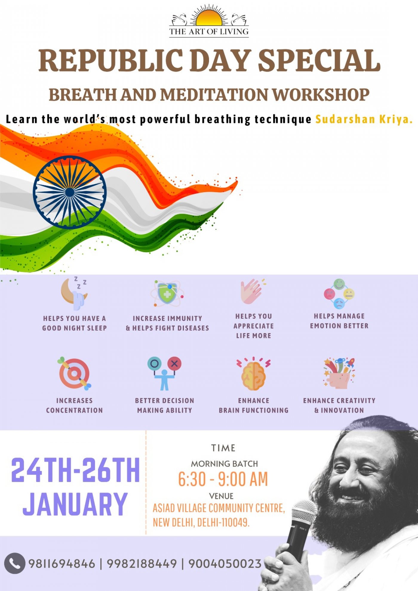 ββ REPUBLIC DAY SPECIAL β BREATH AND MEDITATION WORKSHOP π§β¨ Presented by The Art of Living β¨