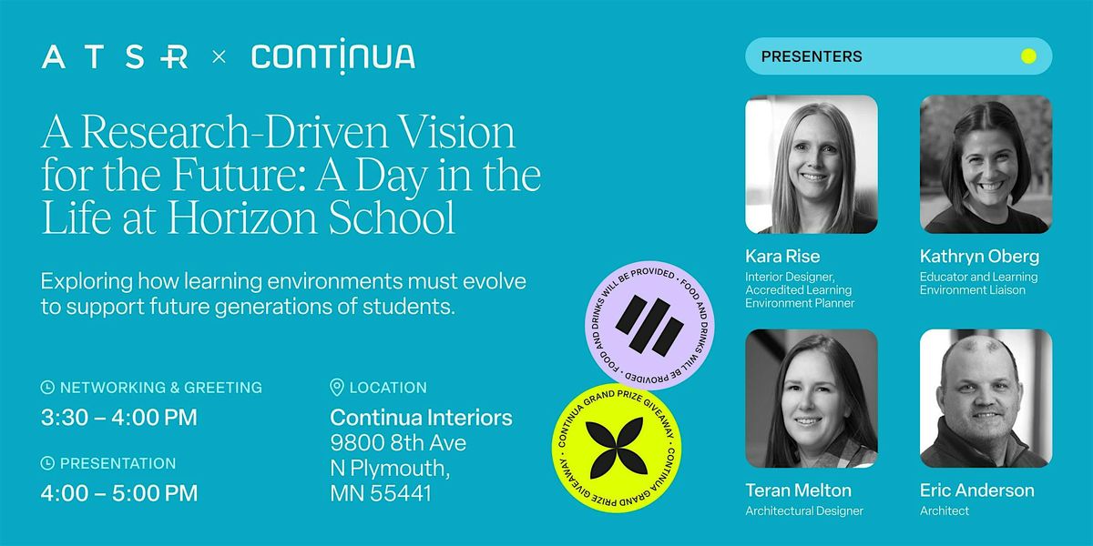 As the world evolves, the need for learning remains constant—even as the tools, methods, and environments that support it continue to change. Join ATSR and Continua Interiors for a research-driven presentation exploring how future-ready learning environments can be designed to support students, educators, and communities for generations.