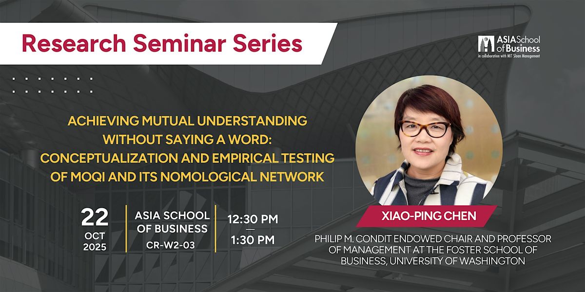 We are thrilled to invite you to the upcoming session of the Research Seminar Series at the Asia School of Business, featuring Professor Xiao-Ping Chen.