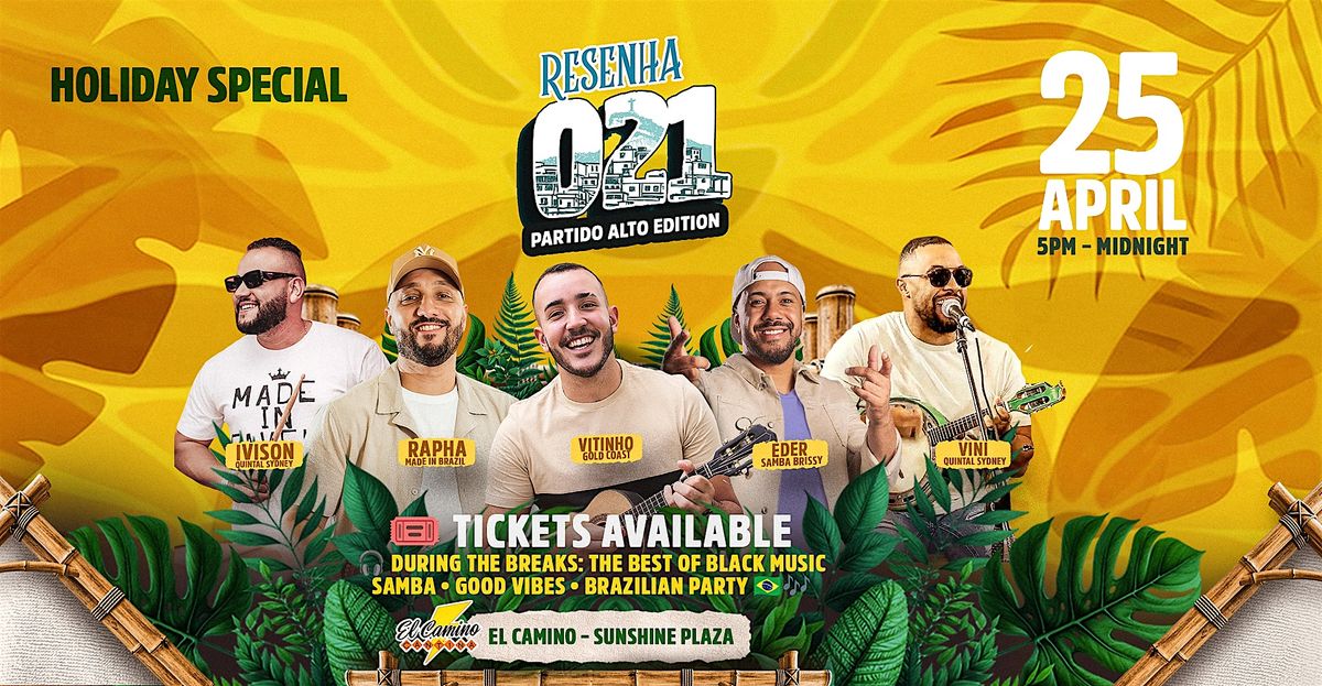 On April 25th, join us for a special edition of Resenha 021 β Partido Alto, bringing together amazing Brazilian musicians and an incredible atmosphere for a true Brazilian party experience.